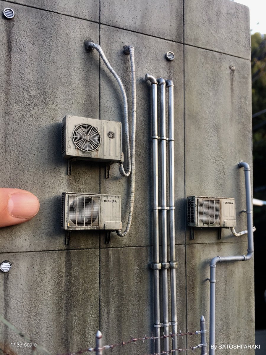 情景師アラーキー 荒木さとし Arakichi1969 ジオラマ製作中 現代のビルの裏側 ありふれた日常ジオラマ 1 35 Scale ビル壁面の塗装完了 北側設定で 湿気よる苔や排気ガスなどの影響による雨だれなどを想像しながら塗装 基本色はラ ミニチュア 家